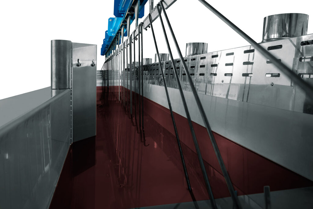 FASTRIP ISP is an in-line chemical stripping system for hooks and racks used in electrostatic powder coating lines.